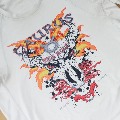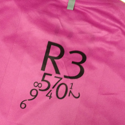 Kläder och produkter av polyester/funktionsmaterial. I huvudsak märkta med sublimeringsteknik.